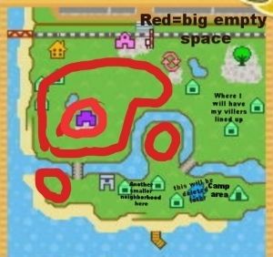 I am landscaping my town and I found out I have a lot of extra space and there will be even more when I am done. So I need some ideas for this space I will have. I have a picture of my map here for reference. Areas circled in red are areas that are or will be empty once i'm done plot resetting. If you have any flower arrangement ideas or pwps in mind leave them here