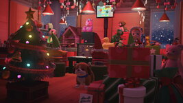 With such little space and time to work with, everyone is scrambling. Queenie and Patty just got back from gathering the necessary materials. Sterling and Diva are working their crafting magic to make toys within seconds using said materials. Stitches gathers up all the freshly crafted toys to wrap them. Bea starts retrieving the wrapped presents to load onto the sleigh. It may look like that Carrie isn't helping, but pumping out All I Want For Christmas Is You festive music on full blast is surely to help speed up the entire workshop. Jingle is nowhere to be found nor his other reindeer friends, so I'll have to fill in for him and snooze for a while before hauling a bunch of presents throughout the night.
