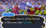 About a day ago, Bianca wanted to come over to my house at 6 PM, so I said yes, and went on my merry business until then. I was just collecting some shells at the beach when the clock said 5:59, so I decided to very quickly empty my inventory at Re-Tail, and juuuust about made it. At 6:00 on the dot, I talked to Bianca, and being 10 SECONDS LATE, she ranted about how I was just "too busy" to spend time with her, and wooooow.