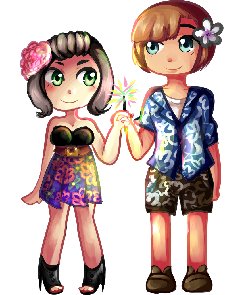 I'd like a couple pic with mine and my boyfriend's mayor. I was thinking a cute, summer related scene. Maybe something with sparklers, fireflies, etc.